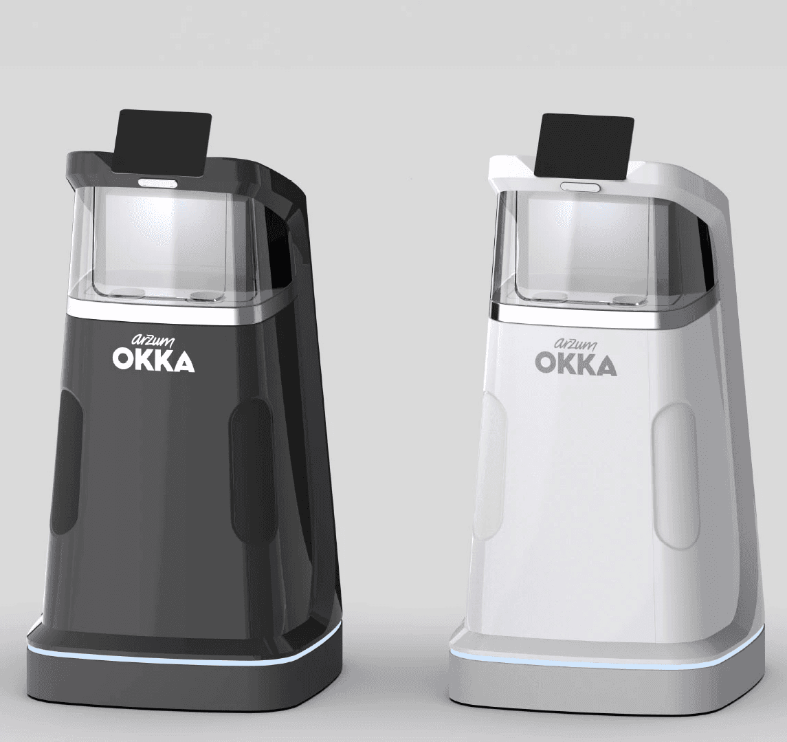 When the load sensors determine the coffee is taken out the hatch closes back and the robot goes away.